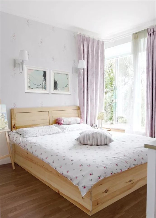 可以发现,齐家网设计师喜欢在北欧风卧室中运用原木背景墙,而且不喜欢有其他的装饰,只用木材天然的纹理来进行装饰。配合简约的卧室家具陈设,风格统一。