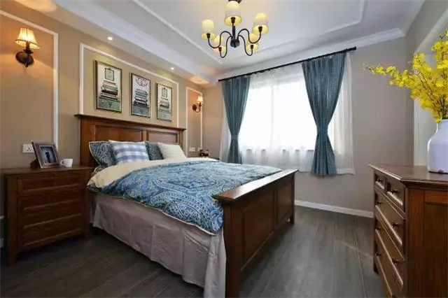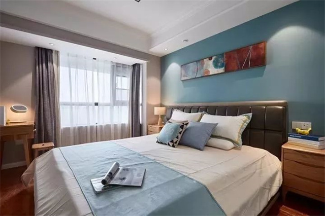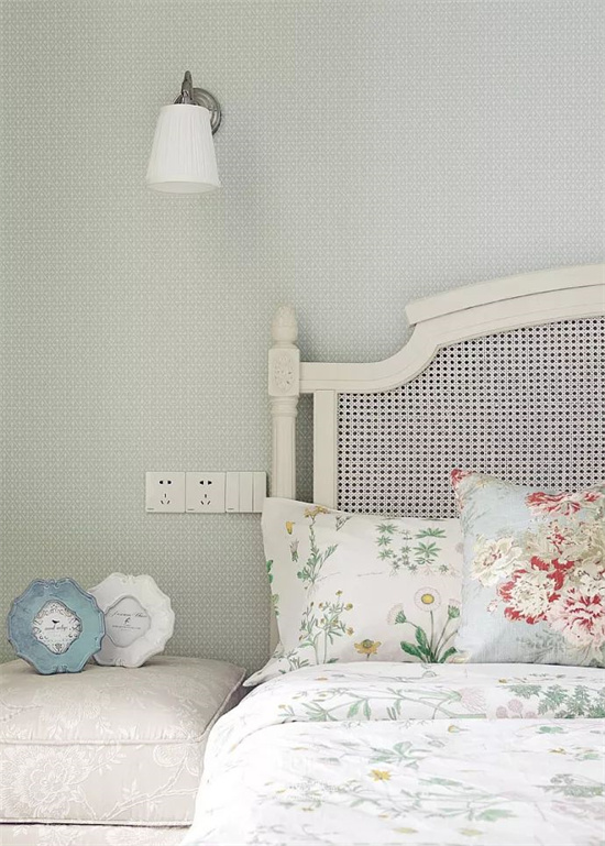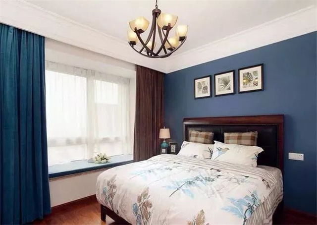 美式风格:休闲、田园感,追求温馨的氛围和家庭成员之间的互动。美式风格整体风格特征体现在色调选择和家具材质的选择上。卧室床头背景墙的材质限制不大,选择同样很多。