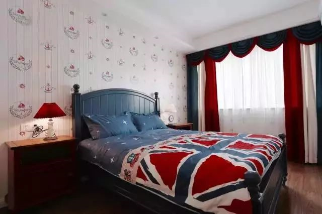 美式风格的墙纸图案没有太多限制,色彩上可以鲜亮为主,不太选择暗色调。图案、色调的选择同样很多,主要根据卧室的整体装饰而定,经常出现的是碎花图案的墙纸。