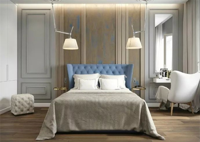 现代装修风格:讲求设计的现代化和时尚感。追求实用主义。卧室的整体风格偏向现代化,空间设计线条流畅明快。因此在卧室背景墙选择,要遵循整体主调。