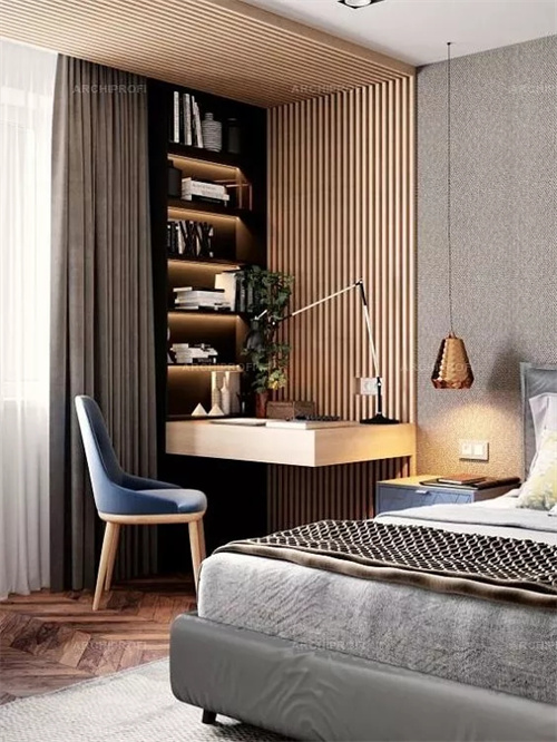 在寸土寸金的城市中,没必要单独开辟出一间书房,在卧室里你可以定制出一个舒适、安静的学习区。