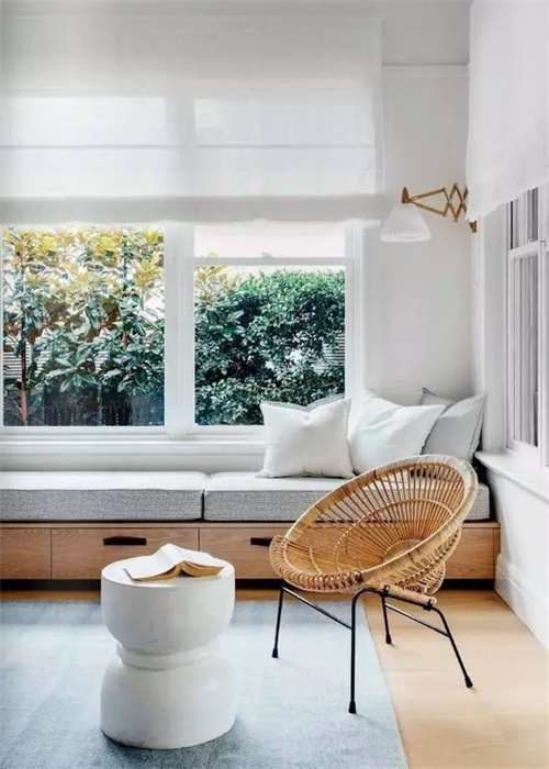 在飘窗上,放上软软的垫子和抱枕。睡前看书放空,周末喝茶聊天,给生活来点小确幸。
