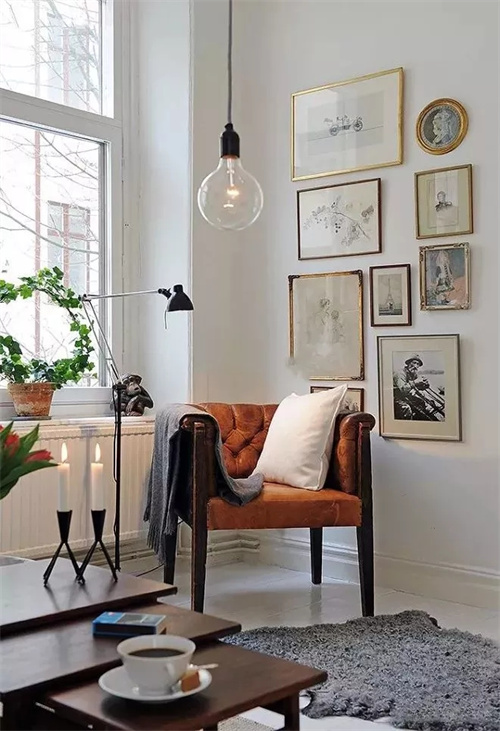 摆上落地灯,墙上挂上自己喜爱的挂画,温暖的光源,让这里感觉无比舒适。