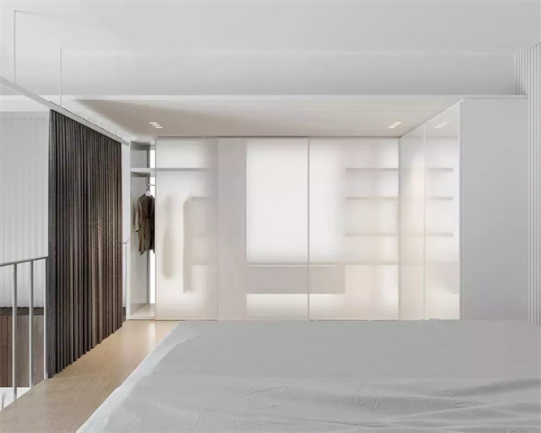 不想牺牲空间的通透感,可以把衣帽间的门改成玻璃或格栅,让卧室看起来更敞亮。