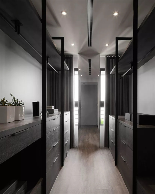 衣帽间内衣柜的合理布局大致可以分为以下几点: