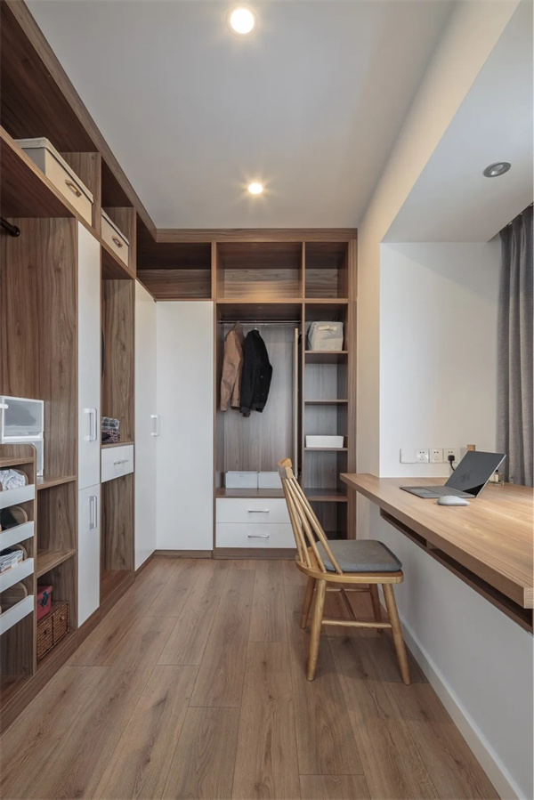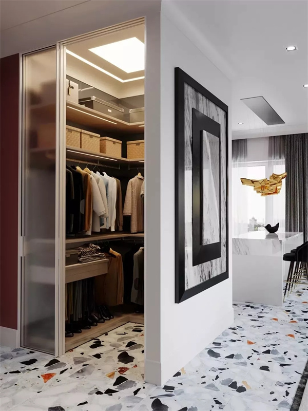 相比于房间内大大小小的柜子,衣帽间的优势非常明显:做到衣物集中收纳,减少过多家具对房间的瓜分,提高空间使用率。