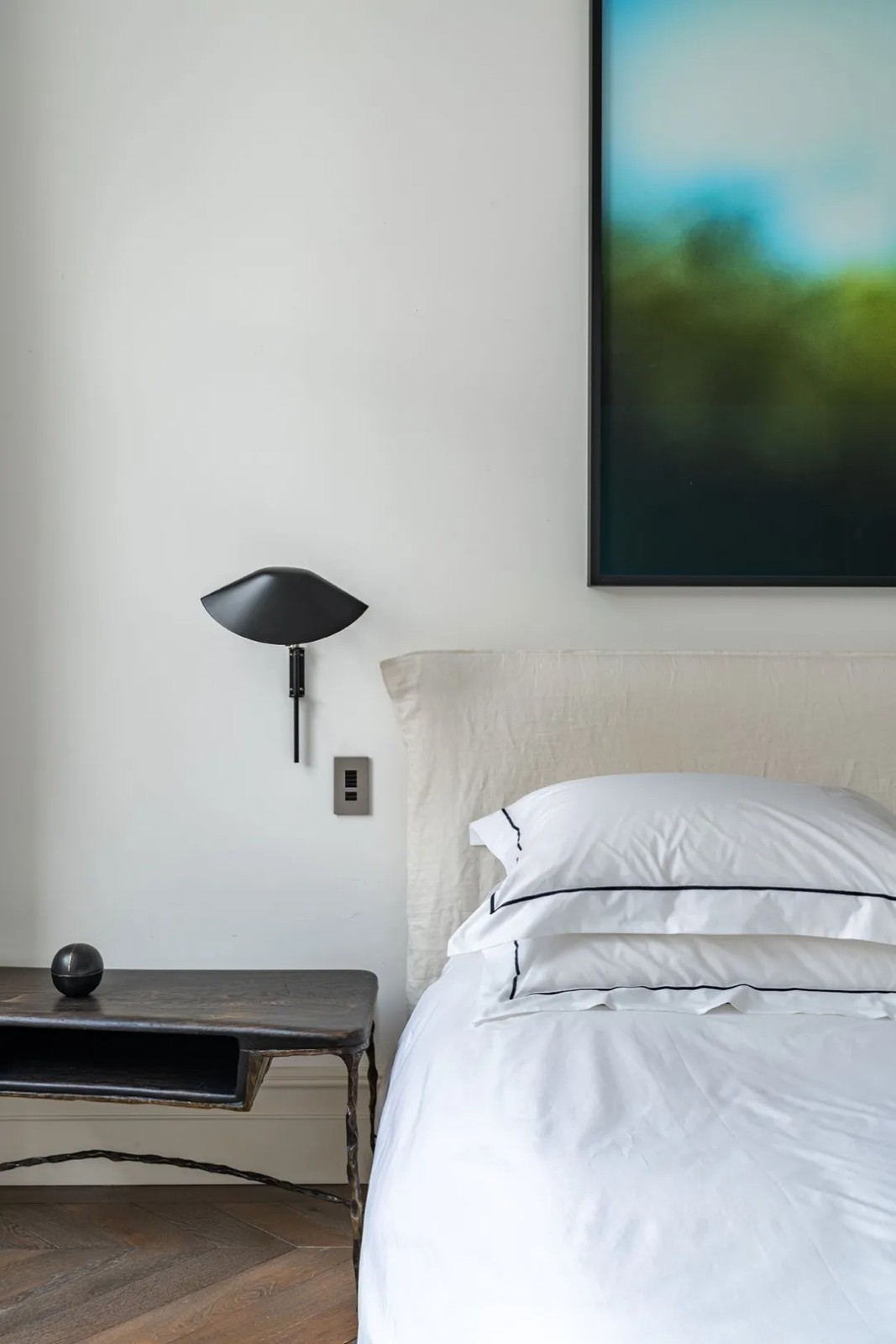 在整栋房子里,天花板灰泥、墙板、硬木和镶木地板等时代特色与业主的中世纪家具和当代艺术收藏品巧妙地并列,以及 Michaelis Boyd 室内设计的清爽极简主义和古怪干预– 后者反映了实践对挑战期望的承诺。