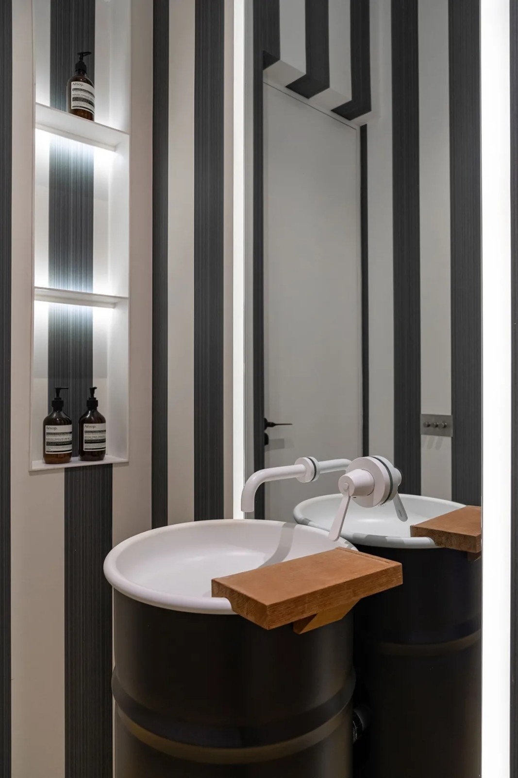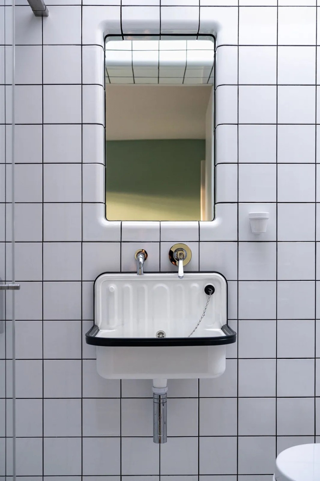在二楼,四间明亮通风的卧室和一个走廊式步入式衣橱是简约优雅的典范,浴室中的几何瓷砖和意想不到的天窗增添了俏皮的气息。