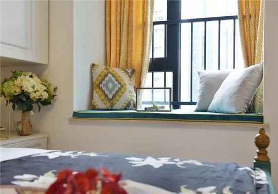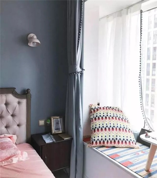 还有那面大大的飘窗,搭配两侧散发柔和灯光的壁灯,睡觉也可以很舒心。