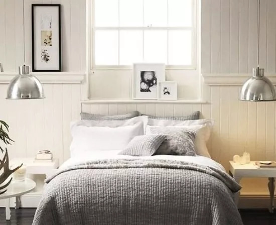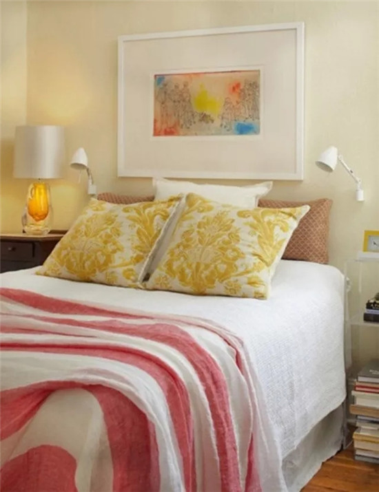 不占床头柜空间,用了两个吊顶作为床头灯,只是一点点的改变就让整个空间创意无限。