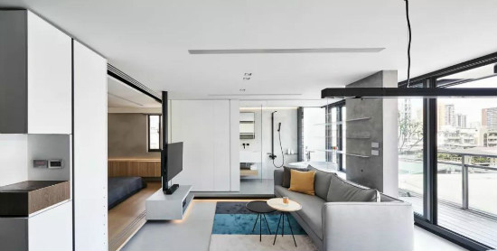 黑、灰色调皆可作为辅助色来凸显层次,局部加入跳跃的亮色形成视觉焦点,让整个画面在保持通透、敞亮的同时,又不乏现代时尚的气息。